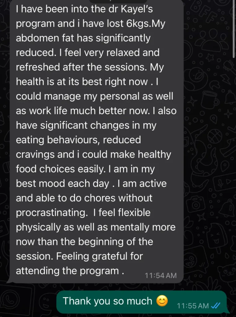 Driven by her passion for natural healing, Dr. Kayel developed a unique 4-step method—combining naturopathy treatments, scientifically proven lifestyle strategies, and yogic practices—to address the root causes of hormonal imbalances and weight gain. Her approach doesn’t just focus on physical health but also empowers individuals to heal emotionally, mentally, and spiritually, leading to sustainable weight loss and balanced hormones.